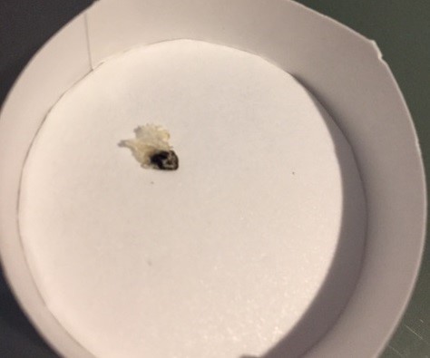 I checked her again and didn’t see the line. But I looked at the gunk again and here is a pic of a smaller piece of it – is that skin on it?! It’s very dry and translucent, like how a piece of skin flakes off when you’re sunburned. Is it possible for buns to get dry skin by their glands?