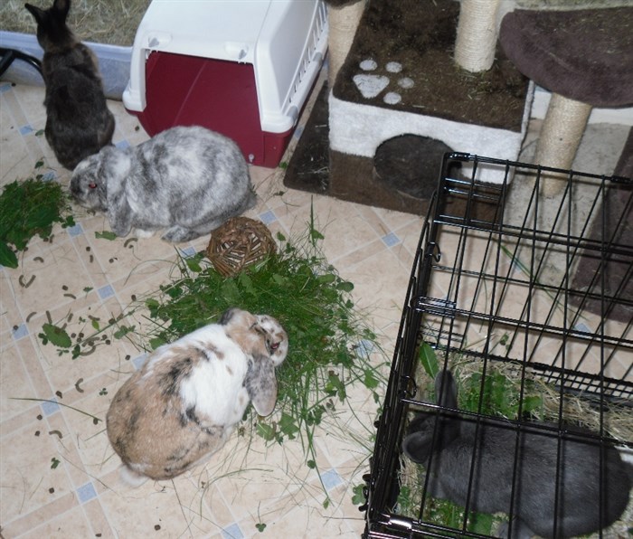 Now, question : when one has a bonded bunny pair and one goes to the vets with one (bun), it is a well known fact (on BB) that one should take both to the vets… but what happens when you have a bonded foursome? Do you have to take all 4 ?….?