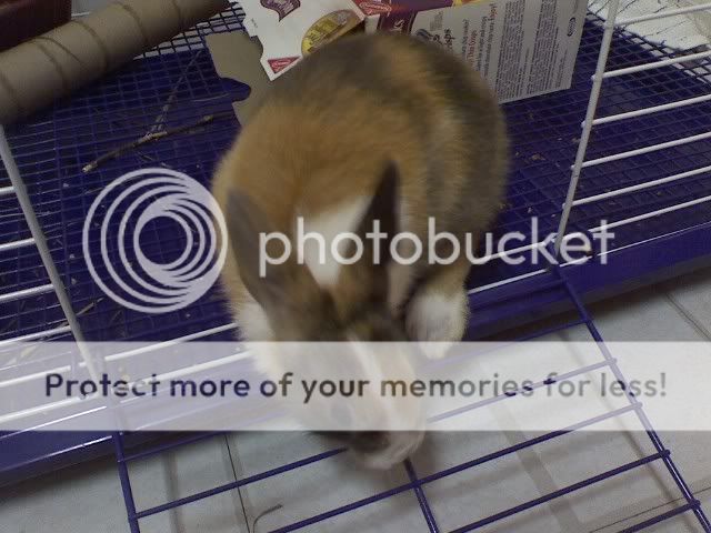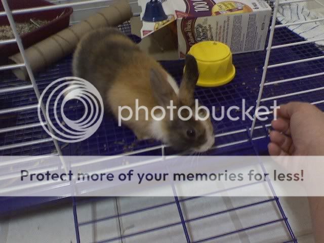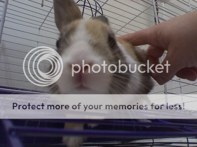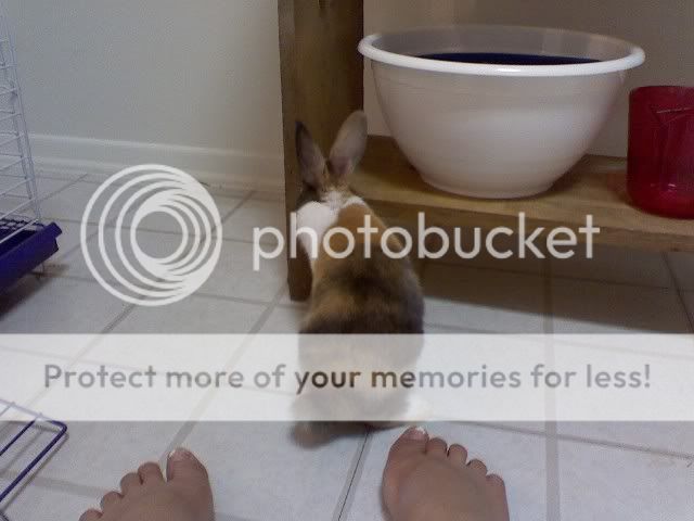 And one last one, this is of my boyfriend, and my other bun, Honey. He was trying to get her to face the camera, and I snapped this seconds before she hopped off. Every time we even REMOTELY turn her over, she assumes shes getting her nails clipped. And she will have none of that!