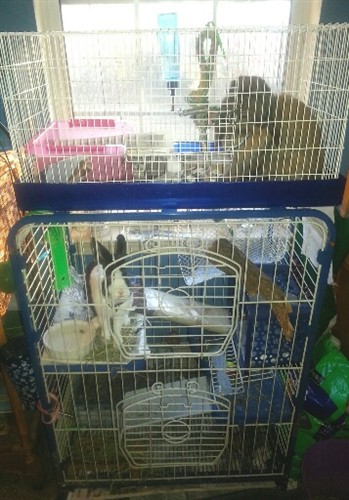 I immediately separated the parents and put Eddie in a single crate on top of the condo they live in to try and ease their separation. Eddie has an appointment to have a lil nip procedure Thursday.