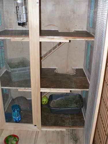 Mocha seems to LOVE the hay rack i put in there! but it is so small i would really like to make one out of a NIC panle. but not like a square one but like the one you have Petzy. i really don’t care about the mess because i would put it above the litter box so it would all fall in the litter box.