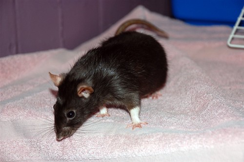 anyway, when i was out of town my boyfriend got a rat. a friend was moving and couldnt find anyone who wanted her. sam was worried she would become snake food or end up as a science project, so he took her.