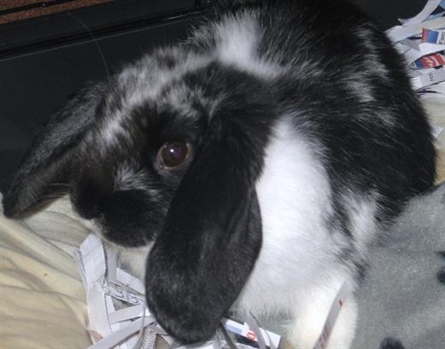 Hey everyone, Here is a photo of 11 weeks old Pancakes, a mini lop black and white butterfly : &#160