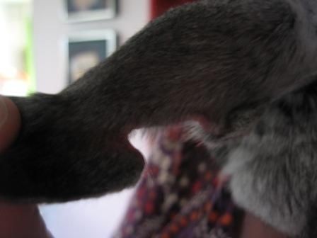 First off, the problem with the ear is due to the anesthesia injected in the ear with a needle – somehow this went terribly wrong and as Dana says, most rabbit-savvy vets won’t do this. For 2 weeks, the whole ear was completely cold, the wound could not heal and it grew bigger and bigger, and they didn’t know if they should amputate the whole ear or not to avoid it from spreading.