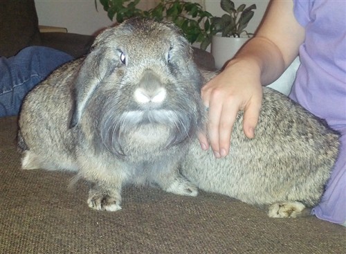 I laid on my back on the sofa, so both buns could fit to sit on me. Here’s Malla sitting on my tummy.