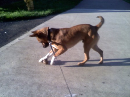 I almost feel angry typing all of this out. He seems so much like a basenji but I just don’t see how it could be possible, it’s frustrating! They are so rare and this is a pound puppy for goodness sakes! I’ve never seen a basenji in person. But, of corse, some irresponsible owner has one somewhere that they let have puppies then dropped them all off at the pound in the middle of the night when they should still be with their mothers! UGH! Well, that’s actually two different things that make me mad….