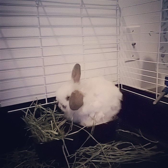 I have an adult female mini Rex and tomorrow I am picking up an abused female Holland Lop kit. The kit is a fuzzy and the previous owner had chopped off all her fur, she has bald spots all over and he had clipped her skin in a few places, including right under her belly up against her hind leg. She was kept in a small crate with two other kits. And tried to fight hard to get away from her previous owner when he would pick her up (didn’t hold her properly btw).