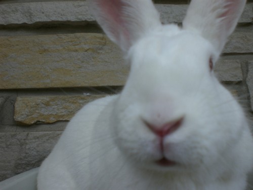 Funny your dog looks an aweful lot like mine, I have a white bunny, & I live in Kitchener. LOL