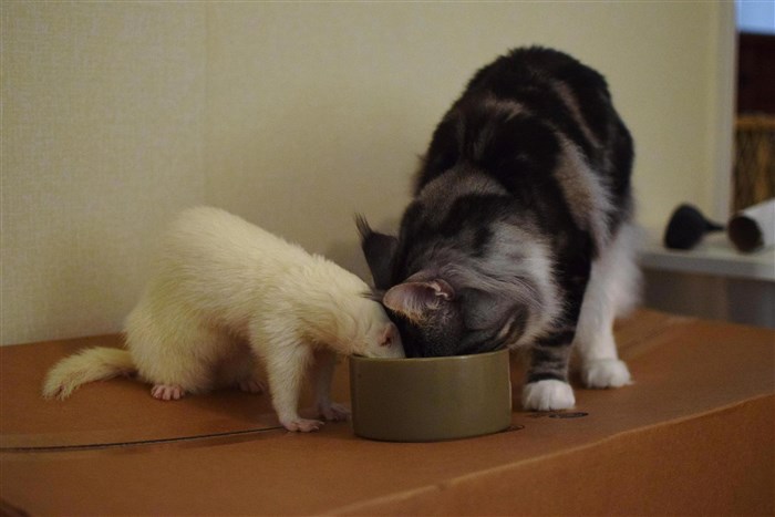 When I was done he jumped in and started to scent-mark everything. When I approached to take a picture he lunged, looked straight at the phone with his ears turned towards me, almost as if saying: “Get the F away from my cage!”. Grumpybutt…