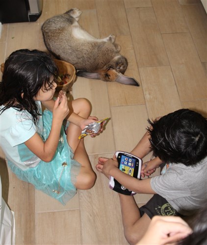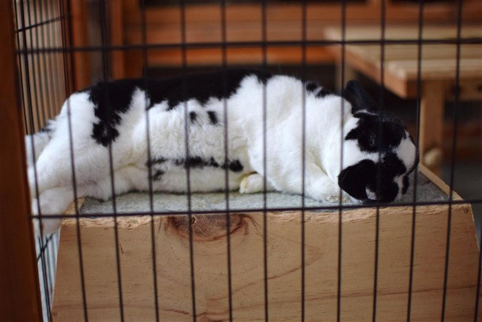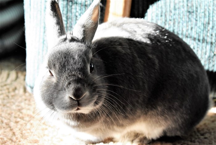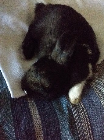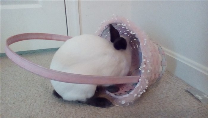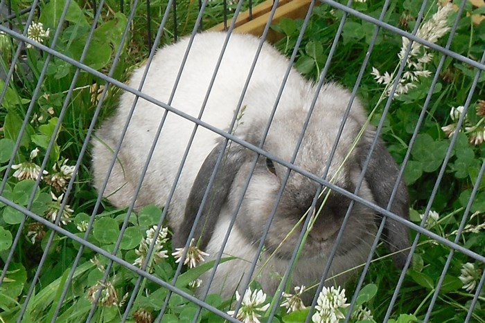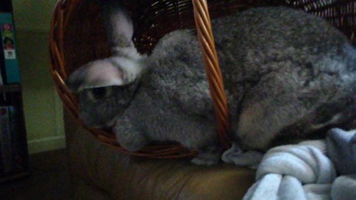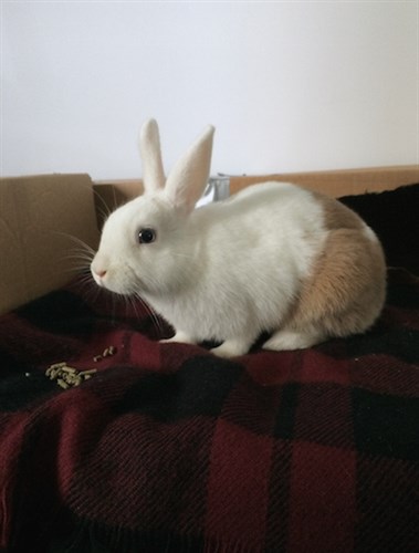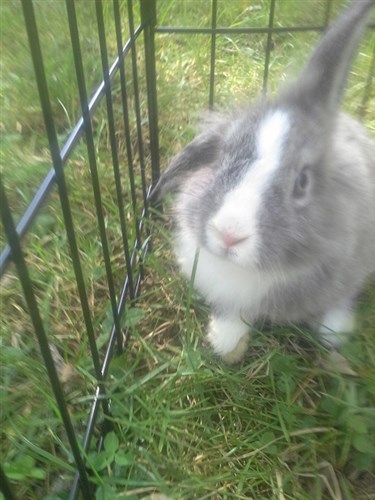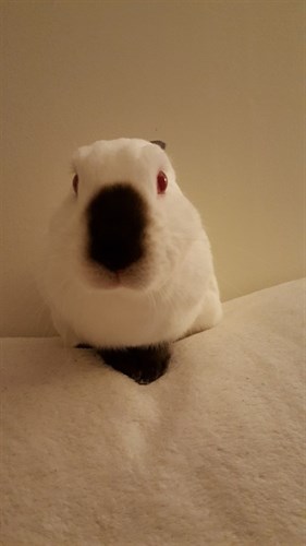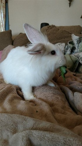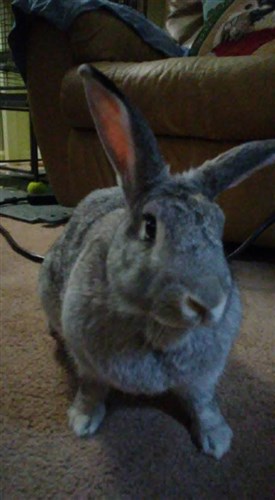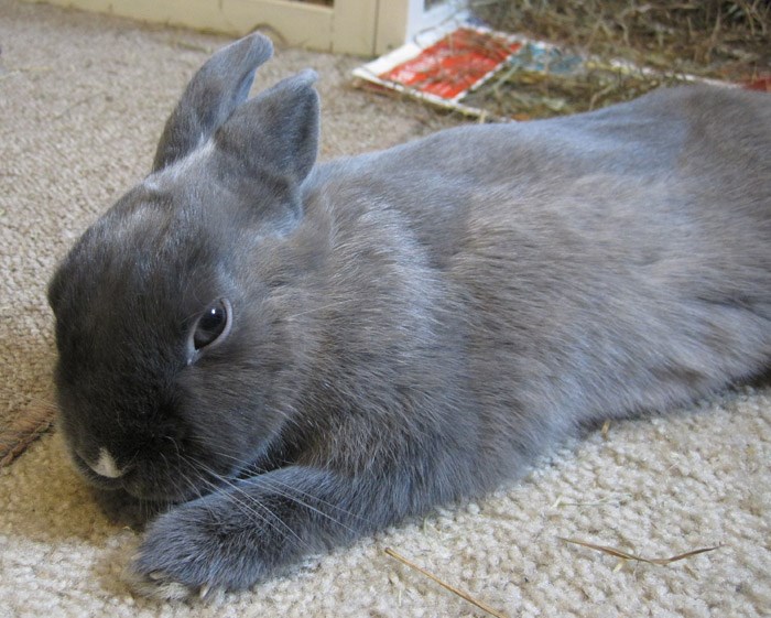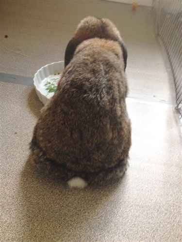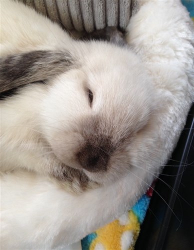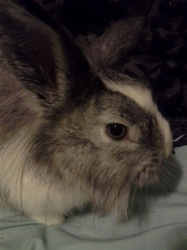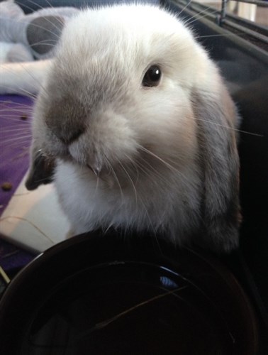 aww. how big is he? is he like 4-5 pounds and 13 inches? that is more or less how big poppy is but i think she is longer than 13 inches. i feel pretty bad for poppy i got her when she was only 5 1/2 weeks old and weaned way too early. does chewie have “ear liner” and a tail spot and a grey nose and grey eye lashes? i’m just wondering because he looks very grey in some of the pictures in the “most interesting rabbit” thread