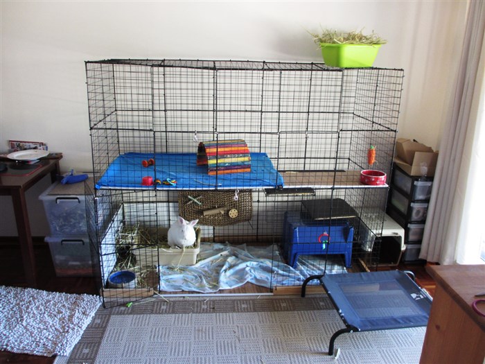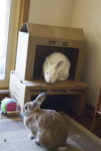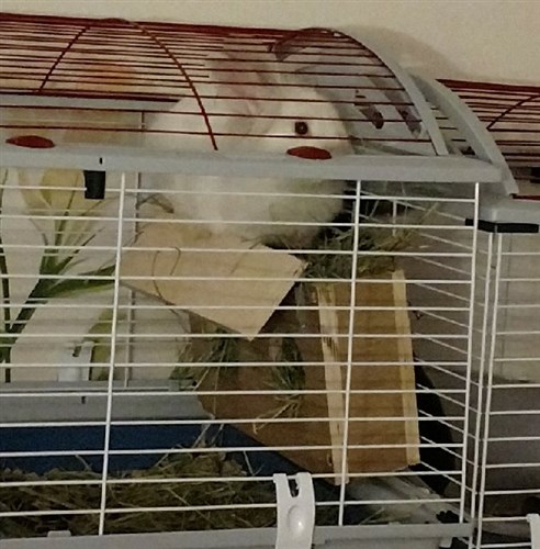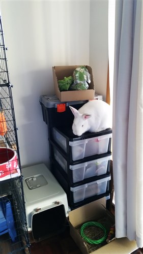 Otherwise she prefers to sit on top of the bunny condo, which is less of a problem now that she can’t reach their ears, but the bird poop issue does concern me. I don’t want Apollo or Luna getting pooped on, lol.