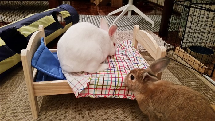 His blankies are cuute. They’re not as cute as him but still very suitable for such a cute lil bunneh.