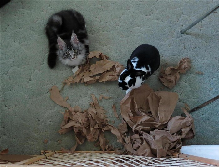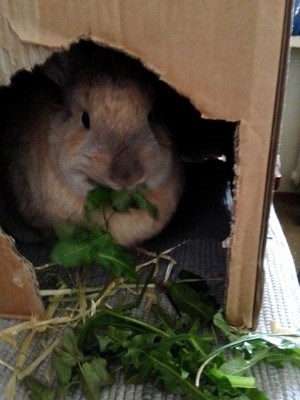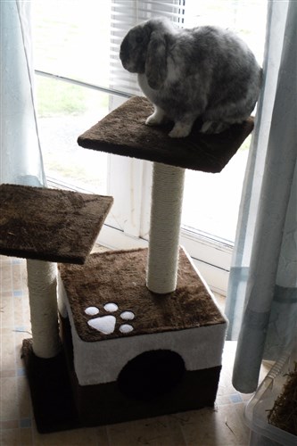 Ahah… I heard that some rabbits like to chew carpet only after I bought that cat condo- so I’m thankful that he isn’t a carpet chewer! Knock on wood…
