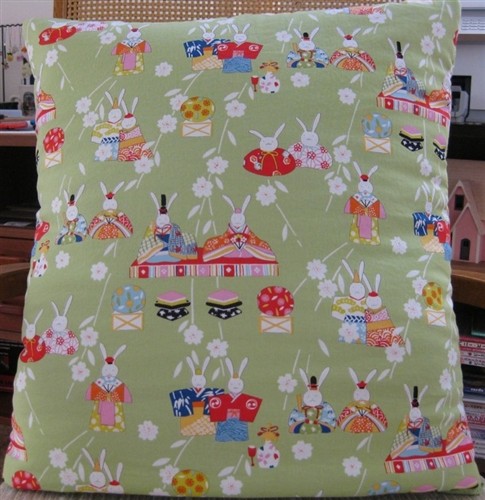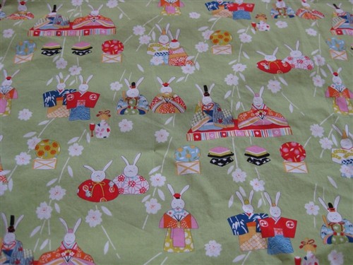 The fabric is imported from Japan.  The bunnies are wearing Japanese clothing.