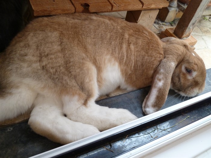 JG- the fear of disturbing a flopped bunny beside you incase they take it elsewhere is awful.. he looks very cozy there ![]()