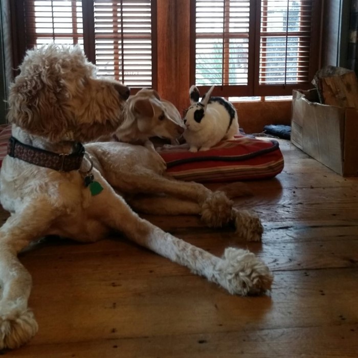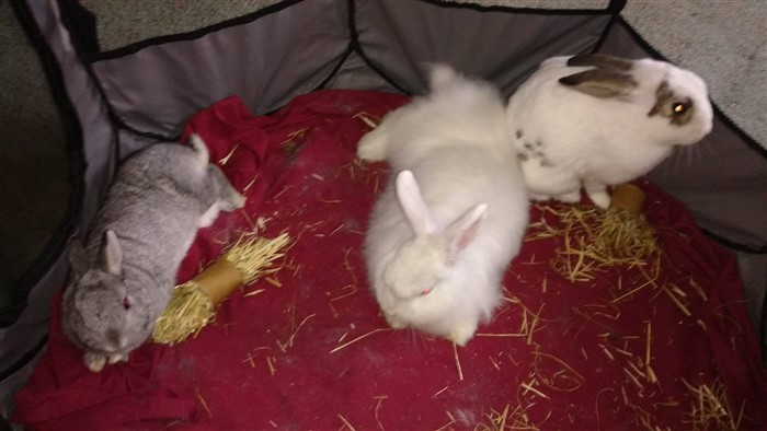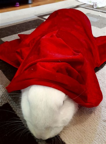 Q8- I wish I could dress Sterling up in costumes like I did Olivia and Bindi. With Halloween coming, I’m just itching to make costumes. I just sold some of their previous Halloween costumes to raise money for shelter bunnies. ![]()