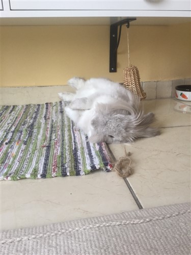 Meh… can’t be bothered to roll back onto the rug…![]()