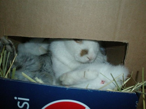 Okay guys so got a question as some of you may know Zoe is feeding 7 bunnies that i am fostering, the babes are 4wks old already but they seem to always be hungry! I keep them in a huge box and Zoe in her cage. she usually feeds them once in the morning and thats it. My mom when she comes visit she puts zoe in the box so she will feed them AGAIN but she really doesnt like that. But the babes rush to her like hungry  piranhas, like if hse hasnt fed them at all. I get mad at my mom because she does this but she says the babes need to eat at least twice a day. should i be putting Zoe to feed them a 2nd time at night? she stomps her feet when my mom puts her in against her will. I’ve heard rabbits only feed their kits once a day since their milk is so rich in vitamins and protein that one feeding is enough for the day. But the babes just feel i stick my hand in the box and they all rush out thinking its Zoe going in to feed them. What do you guys think? With her OWN kits remeber she had 3 of her own, well she would only feed once but maybe because it was only 3 and they got more then enough milk and didnt have to fight with four other buns for milk. I dont know i feel bad putting Zoe to feed them twice a day.