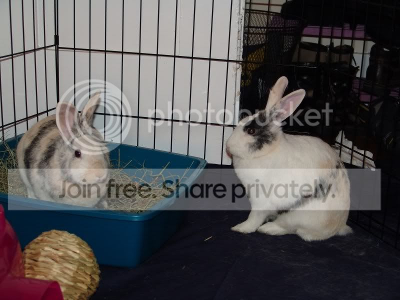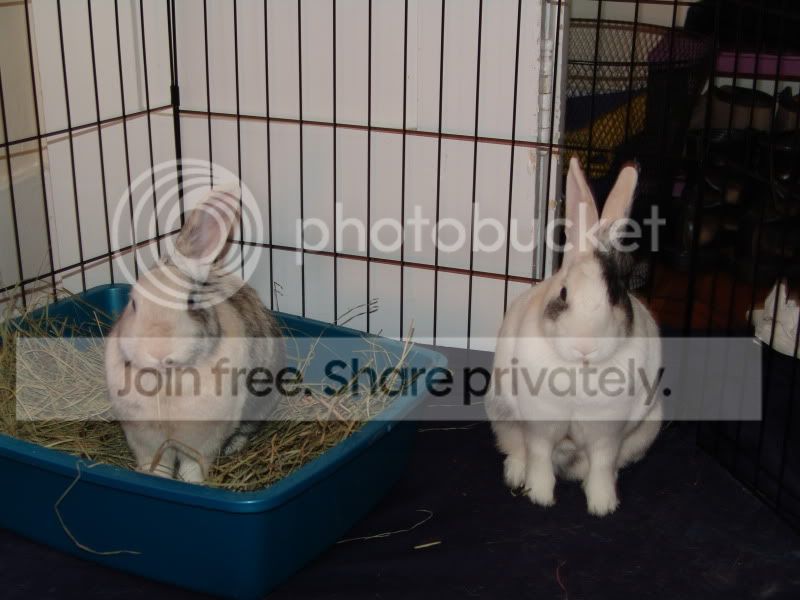 And there were these silly PINK (ok, peach, but still!) harlequin brothers who had been there for almost TWO YEARS and STILL didn’t have hardcore shelter-syndrome, and would crawl all over me to try to get out-time, so what could I do??? I adopted them. Now I am OFFICIALLY OUT OF ROOM. There is NO MORE ROOM AT THE INN! If I find anybunny else, I’m closing my eyes and holding my breath until somebody else takes them to the shelter, ’cause I can’t save ANY MORE!