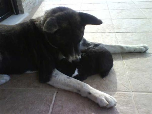 And may I just show some pictures – they are not mine. I got the pictures from a friend who works at a shelter. She helped a family with a bunny adopt a dog, and she sent these pictures to me of the dog and the bunny to convince me that I could get a dog as well. I love that dog by the way! It looks like there is some akita in it. I love spitzes!