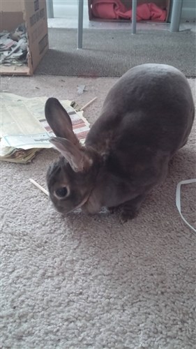 So, Marley, a 9-12 month old female mini rex has joined our household. She was rescued from a “I want a cute little bunny” home where she rarely,if ever, left her cage. She was fed pellets and Timothy hay with very few veggies offered. She is scheduled for her spay in 2 weeks. She’s currently being treated with antibiotics due to an odor that the vet said could be caused by a UTI which is a result from sitting in a cage in her waste continuously. Poor thing never had her nails trimmed and were so long that her feet were overcompensating. We trimmed 1/4 inch total. it was so sad.