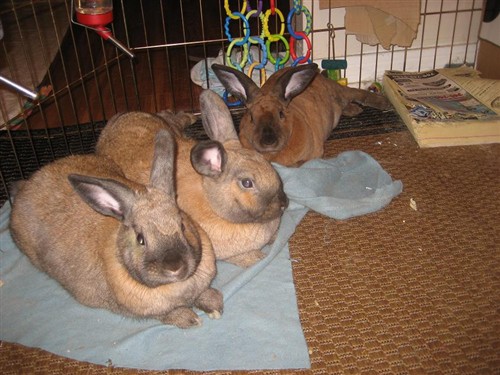 Mac, these are beautiful photos you posted. I think Dexter is bigger than I thought. He’s bigger than a regular mini rex (no more than 4 lbs), is he? Is this Davey grooming him in the one picture? Are there any two out the three that are closest? In the photos it looks like a perfect three-way friendship. Their pen is very nice, too, one day I want a pen like that attached to my trio’s condo… –how are the litter habits at this point?