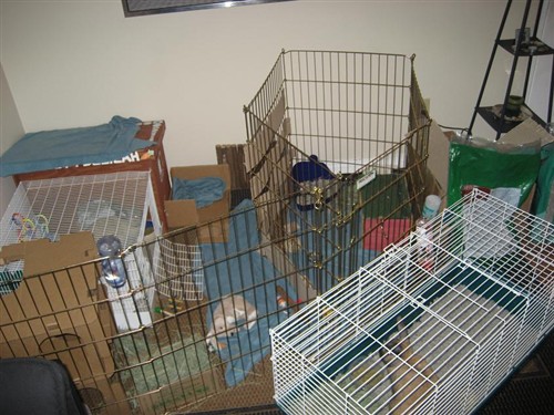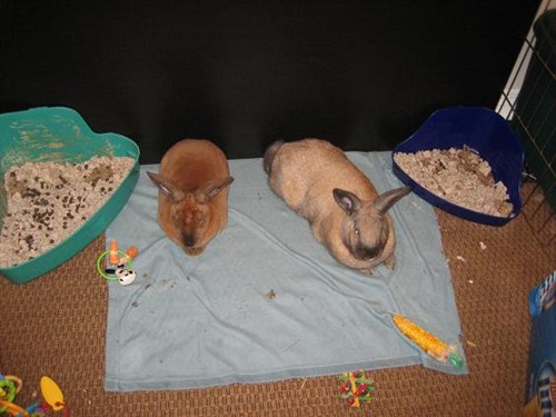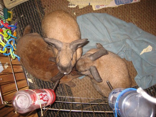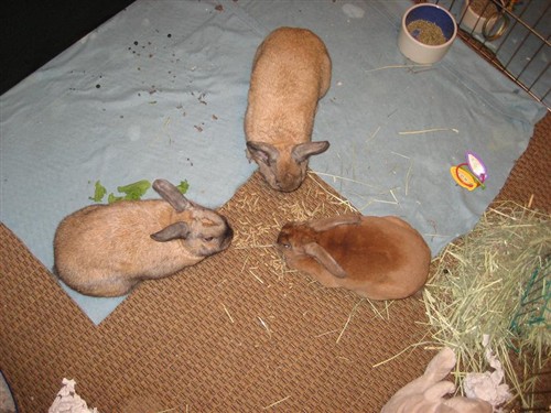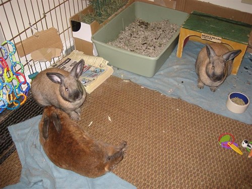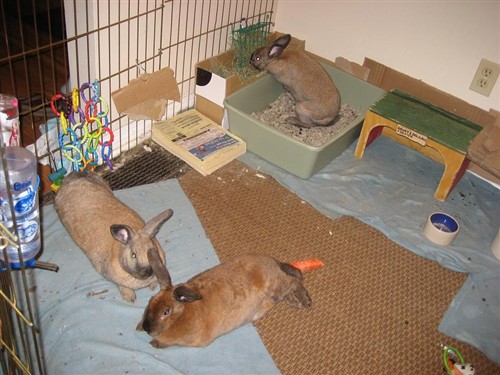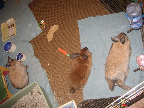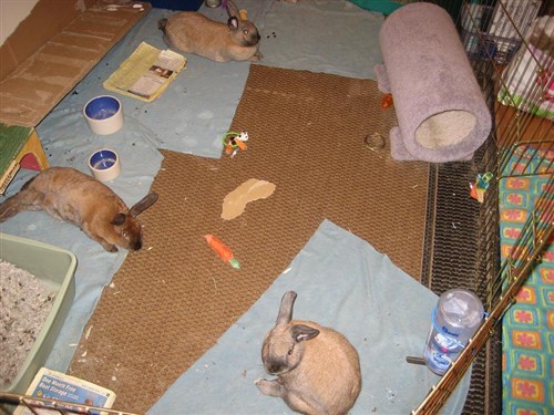 Thats a good idea…It can get warm during the day, thats all I worry about. Maybe some frozen water bottles and a fan would help that. That would give me time to un-scent everything and re-configure a new cage suitable for all three! I worry that they arent ready for that yet though, maybe I am just being a nervous bunny mom.
