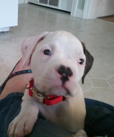 The boyfriend, who doesn’t live with me, got an 8 week old American Bulldog pup yesterday. As you can see, he’s extremely awesome.