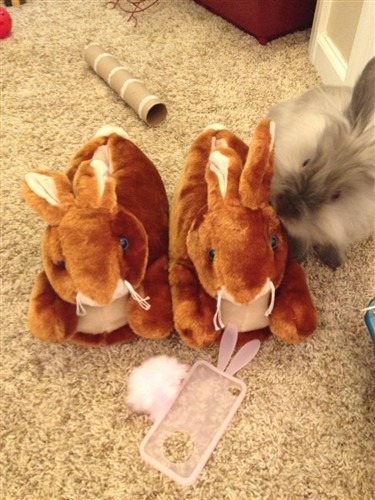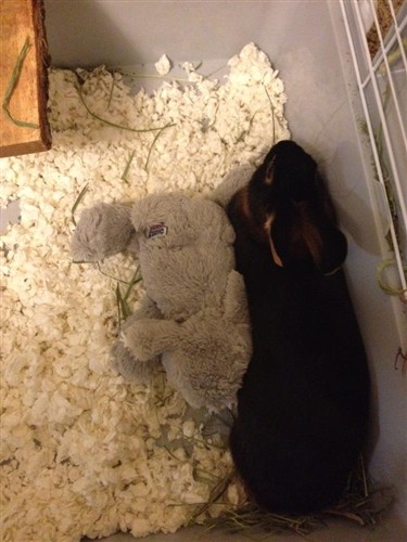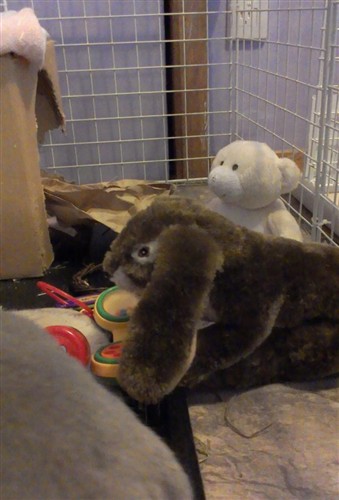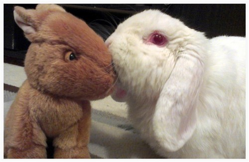 I used to have plushies for Rascal when he was a single bun! He loved to groom them. Now he has Valentine! =)