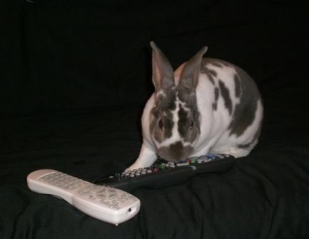 Chubs is very naughty too…he eats buttons if I forget the remote (or usually if Kc does!). Our remote looks like it’s been through a war..good thing I knew what they were before because ya certainly can’t tell now! Also, I keep the pellets and hay and what not in like these plastic drawers? Well i don’t know how but Chubs got into one the other night and there was a hole eaten through the corner of the hay bag, with hay strewn all over the kitchen (as if he didn’t have some in his litter box already?? lol) and he’d ripped the corner of the pellets open and ate who knows how many…Naughty bun! He didn’t get his serving of pellets that day. And for now I have the drawer things up on the counter for goodness sake. *rolls eyes* as if I could ever really be mad at him!