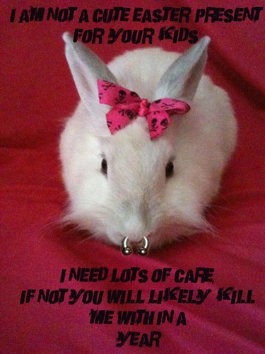 But good job with the PSA, it is sadly quite true, especially with buns who were bought “Cause it’s Easter and buns are cute!”