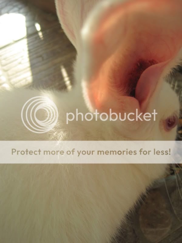 I would guess the rabbit is between 4 and 5 months old, unspayed (and my aunt won’t spay her when it’s time…she doesn’t really want the rabbit anymore so she’s not going to voluntarily extend it’s life), and growing soo big everyday! And I seriously doubt she would take her to the vet.