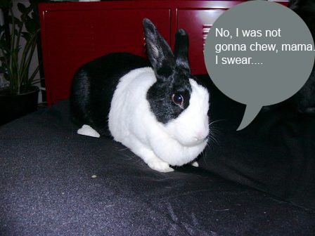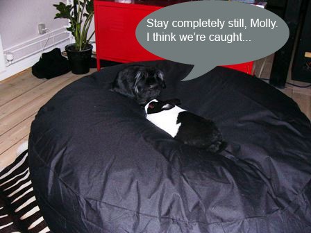 You’re making me worried now. I have such sweet well behaved bunnies (except for Molly’s chewing), so I had not considered that they might start peeing on the bean bags. You really think they would? Bunnies move in mysterious ways, it is hard to predict their next move, I know. I hope we sell the apartment soon, so the bunnies can get the bean bags in their own room, since they apparently love them. They have only been bought to fill out a part of the living room which is not used, but still I prefer if they are not peed on Better check if it is possible to take off the cover!