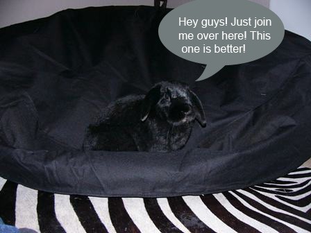 That is adorable! They are such healthy beautiful bunnies. They deserve to lay on bean bags and they make the bean bags look more important than what they are actually worth?!