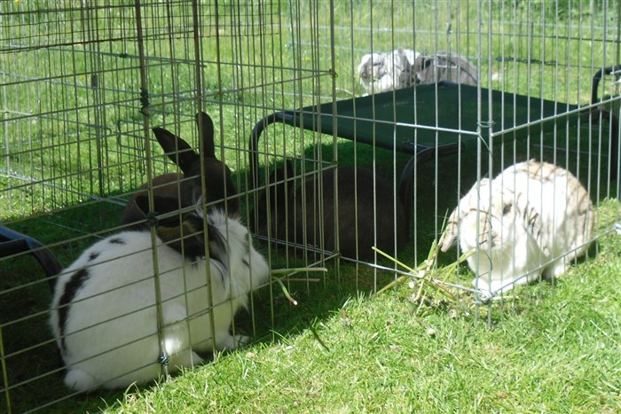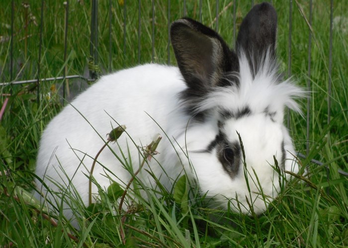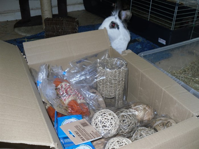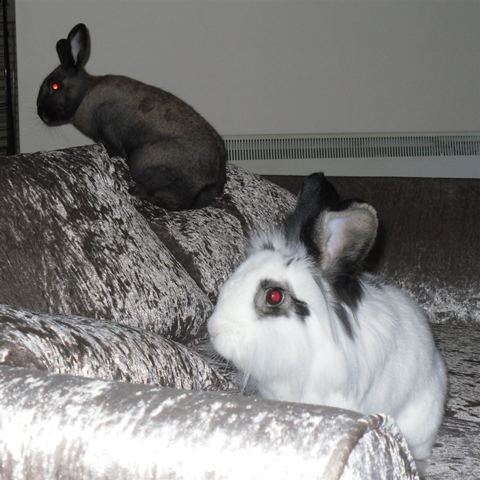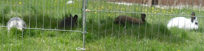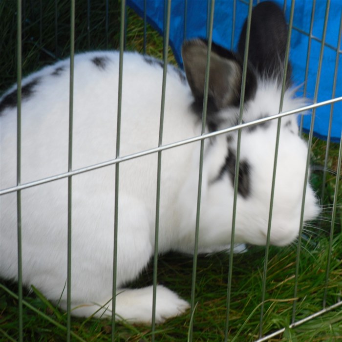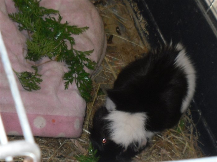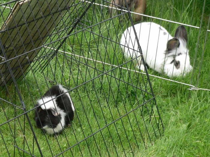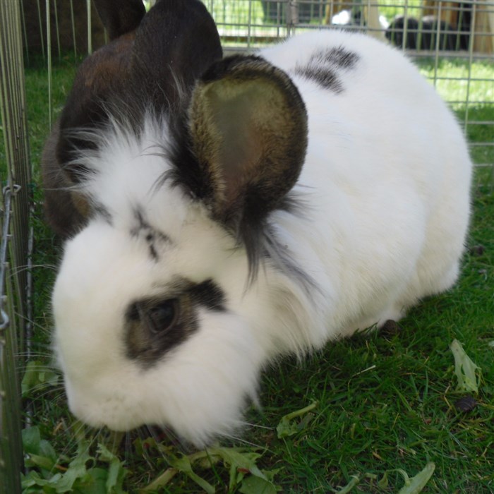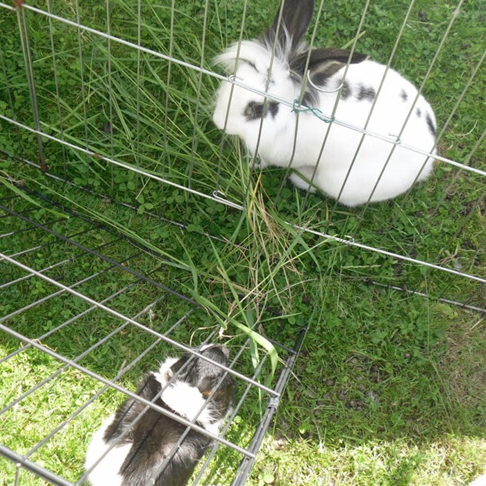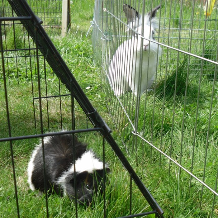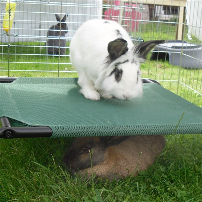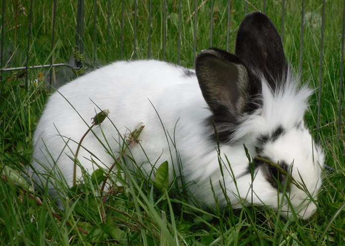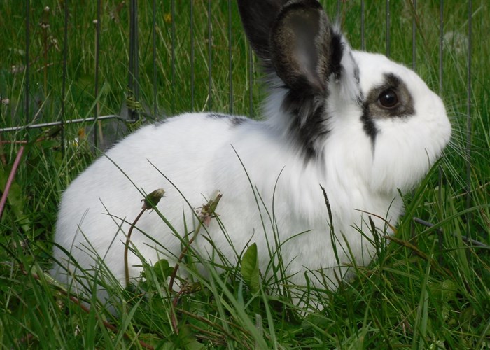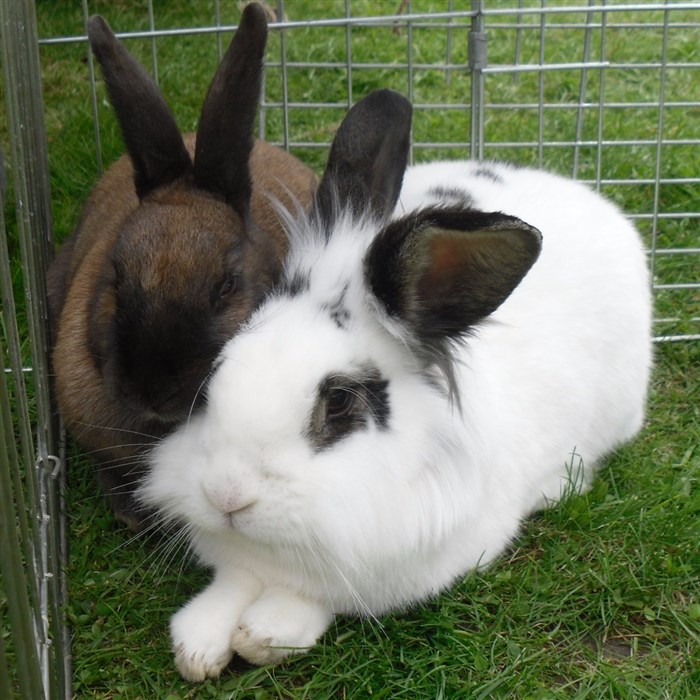 Podge was a stray and was adopted by us just over three weeks ago, as a boyfriend for another stray we adopted. He’d been stuck in a rescue’s hutch since last summer, and so is behaving more like a kit than an adult, always on the go, and everything is a great adventure! Podge and Gina are now in the process of being bonded with another pair, who includes our third adopted stray.