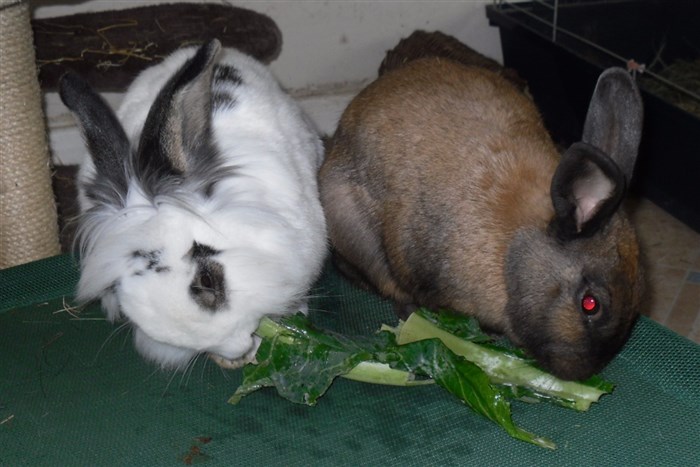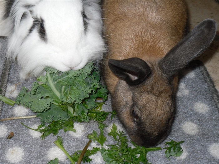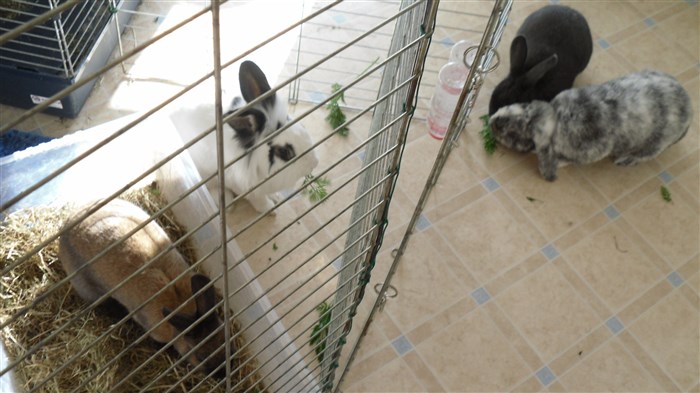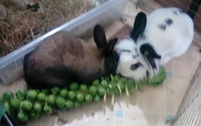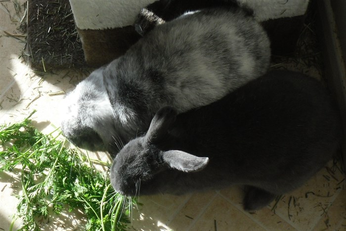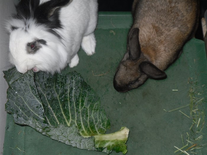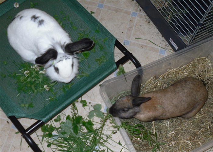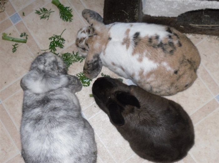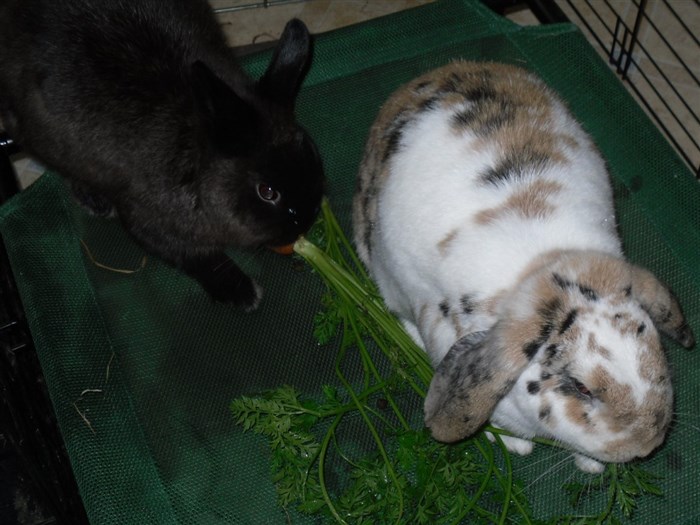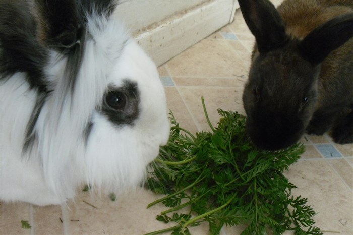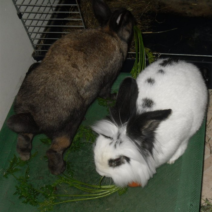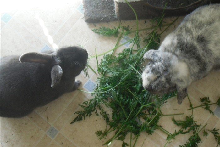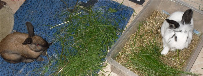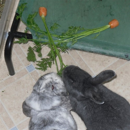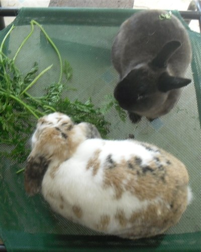 Thanks to the kind lady at the market giving me two bunches worth of free carrot tops, all six buns very quickly forgave their first dose of Panacur ![]()