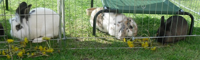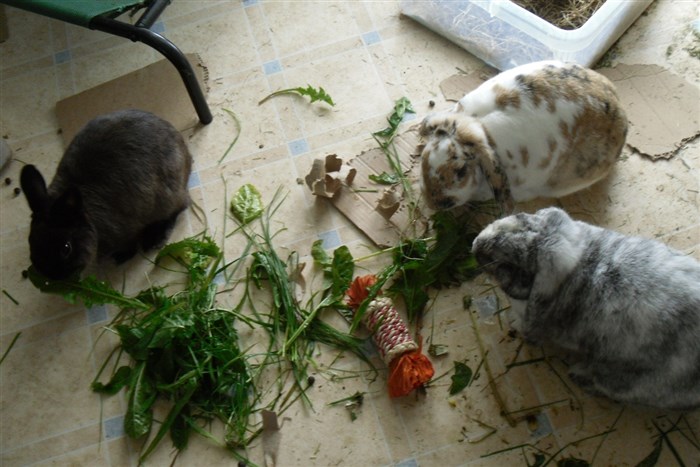 Every bun has decided that the giant daisies from the garden are scrummy after all – to the point where daisies can be used as an acceptable apology after spraying them with Fly Strike Protector