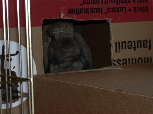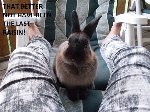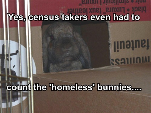 Now I’m thinking that ‘Homeless bunneh: will loaf for noms” may have been more apropos?