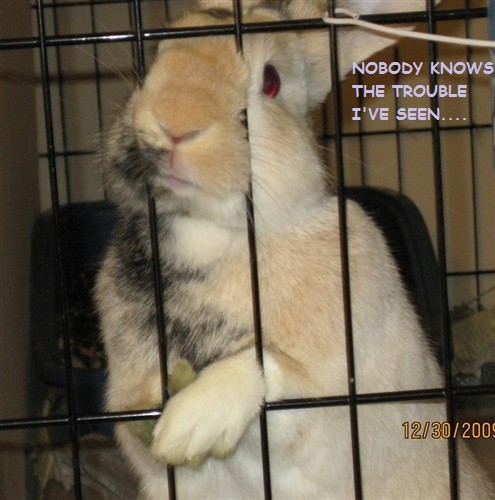 I was going to use “No bunny knows, the trouble I’ve seen…” for this one: