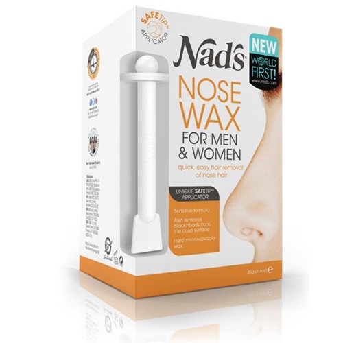 Yep… You squirt wax in your nostril. Insert the funny stick with the ball on the end and once the wax hardens you yank it out bring your nose hairs along with it roots and all