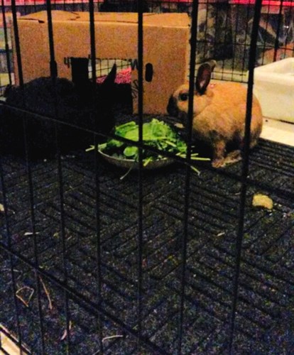 Benni has turned out to have a flair for home improvement and hasn’t let off making renovations to the cardboard castle since I put it up. The whole floor has a carpet of cardboard shreds. I’m glad he’s happy. He seems to have had a rough go of it when he was in “general population” before we took him home. He had a few nip marks on his ears the vet pointed out and they’re healed but I guess they’re here to stay. I’m not worried about it they give him character, but I was worried it might have impacted him emotionally. I was nervous about Lucy bullying him since she’s definitely a dominant kind of doe but they have been so sweet to one another. I think they were a bun match made in heaven I’m so glad I decided to take her instead of holding out for a female holland lop.