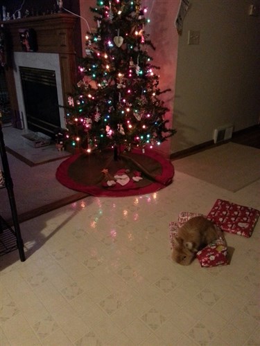 LLH: How funny, Pumpkin must have wanted those presents very badly! The other picture is hilarious, it looks like she put you in a time out! ![]()