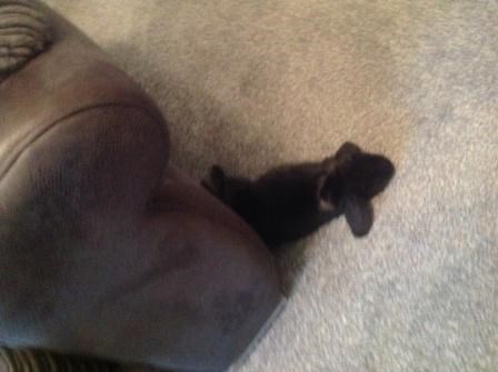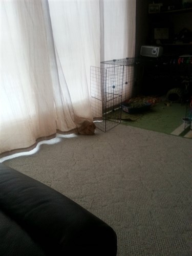 Here’s a little video of Theodore exploring the space behind his pen. He only knows how to get out one way: walking backwards. This highly amuses my boyfriend and the cat.