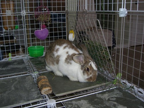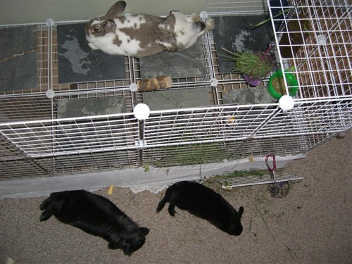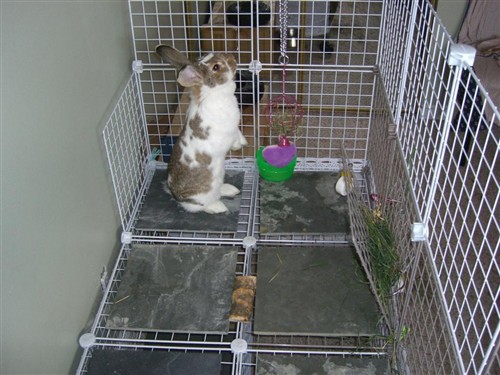 What a pretty girl! She’s so sweet! One thing I’m slightly concerned about… if your pair are not always confined when you’re not supervising, can you extend the roof of her enclosure so it’s fully covered? I think a determined bunny could easily hop out of there and this could start a ruckus.