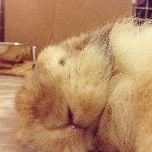 AndHenry: When you put him on his back on your lap, you’re putting him into a trance. Most bunnies will react that way when put on their back, it’s an instinctual response to being grabbed by a predator. He’s essentially “playing dead”, it doesn’t actually mean he enjoys it. I’m sorry to tell you that because I don’t mean to ruin your cuddle time with him. ![]()
