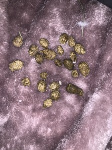 Megacolon is pretty rare, even with the gene that is linked to it, but it’s good to be aware of. Since Bernard’s diet has kind of been all over the place, my suspicion is that her weird poops are most likely related to that. I can’t tell the size from your pic, but the megacolon poops are also HUGE, like they remind me of an easter egg candy. To me the larger poops in your pic look more like 2 poops that didn’t separate or got stuck together, which can happen with a gut slowdown.