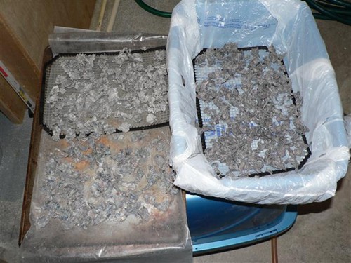 (I covered the pan/litterboxes in plastic then I put my litter box screens on top of the plastic.)