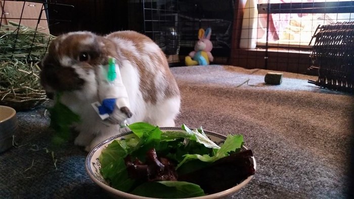 She’s still not completely herself, but we did get a binky this morning so I know she’s definitely feeling a TON better.We just got back from our regular vet for a check and he says she’s doing extremely well. Poop tests came back negative and I’m just waiting on her blood test results which should be in on Thursday. I think she’s just exhausted from all this because she came home and went right to sleep, but hopefully she eat some salad when she’s done her nap.