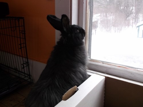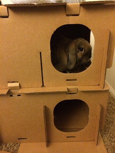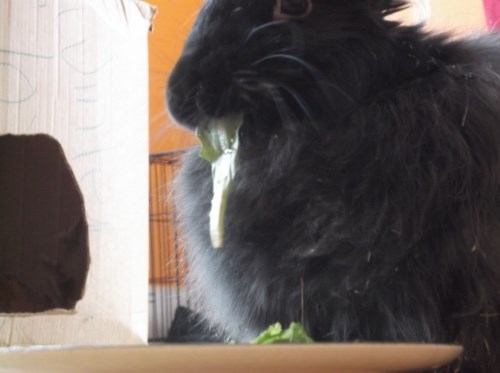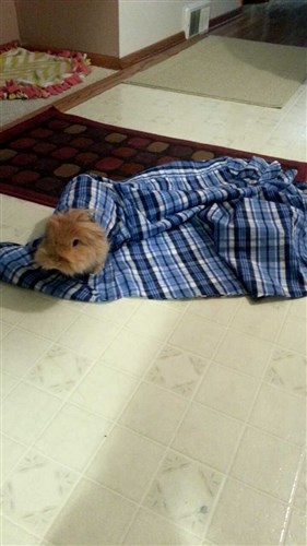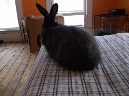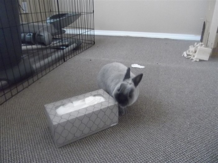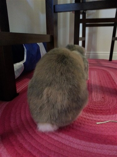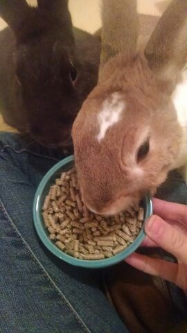 She’s very easy to love. I have her set up right next to my computer, so right now she’s digging and tossing around pillow cases like she’s at a playground. She does NOT like the gate though (what bunny does?). Still, since she’s been on an almost strictly pellet diet for most of her life she’s dropping lots of extra cecals right now, so I have to defend my rented carpet a bit while she’s not being supervised! ![]()