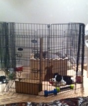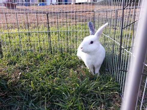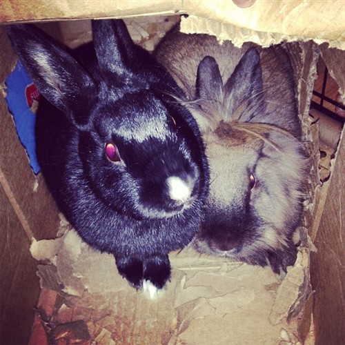 here’s pictures of my new rabbit, Rodan… got him Thursday, he was neutered this Tuesday! so I haven’t gotten many pictures of him. I hate the quality of my phone, it stinks…it’s old   The last photo is me trying to get the rabbits to enjoy each other. They had been fighting a lot but then they both flopped next to each other with Lucky in his ex pen, so I decided to feed them to see what happened and Rodan was happy to hang out with Lucky..Lucky was more like, who is this dude in my house?! lol